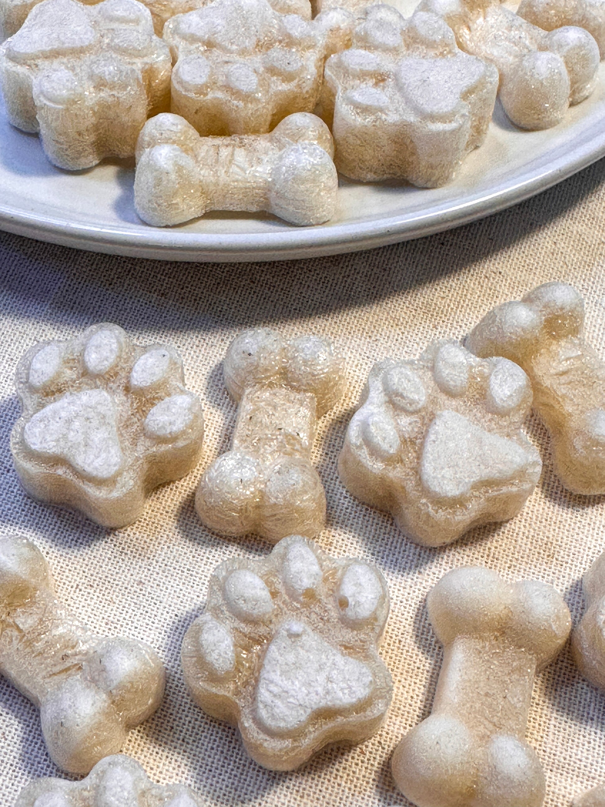 Freeze dried beef bone broth is a robust, nutrient-dense option for pets, naturally rich in collagen, glucosamine, and chondroitin to promote joint strength, mobility, and long-term skeletal health. A dash of apple cider vinegar is added to help extract minerals from the bones, boosting calcium, magnesium, and phosphorus content for stronger bones and overall vitality. Compared to lamb bone broth, beef delivers a deeper, heartier flavour and a higher concentration of joint-supporting compounds, making it especially beneficial for active or aging pets. These treats can be served as is for a crunchy snack or rehydrated into a nourishing drink to pour over meals, enhancing both flavour and nutrition.